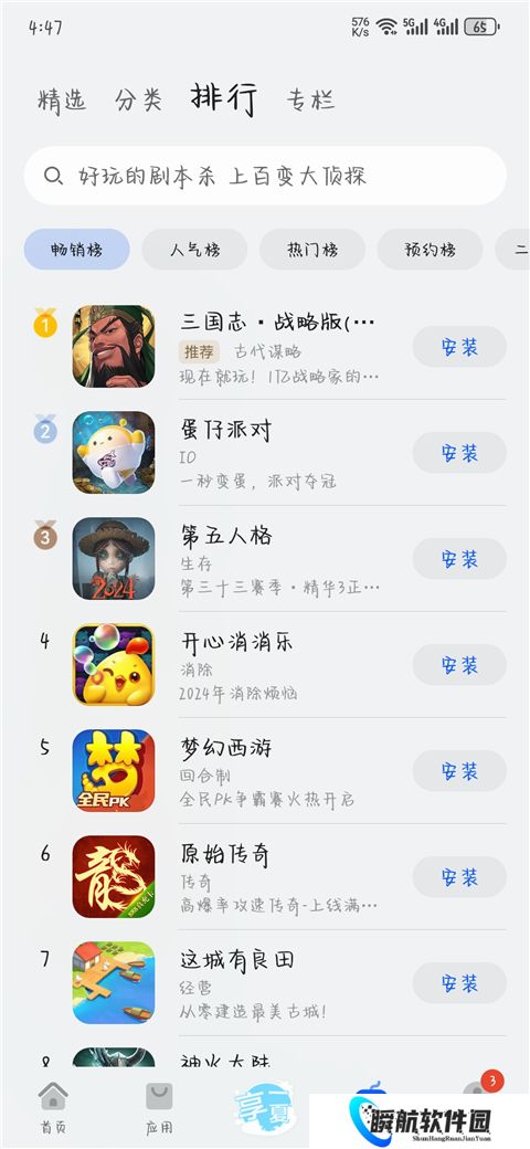 2、提供多种排行榜单,如热门榜单、新品榜单等,发现时下流行的应用和游戏。