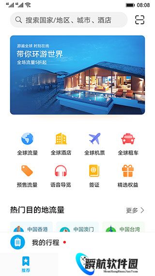 1、打开天际通App,点击页面顶部"搜索栏"或点击"全球流量",搜索目的地。
