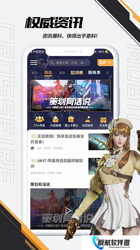 穿越火线手游助手又被叫做掌上穿越火线,这是专为国内CF玩家们打造的一个游戏交流社区软件,国内大V主播动态抢先看, 明星每天都在向CF发烧友们分享精彩时刻,挑自己感兴趣的话题评论,留下自己对话题的看法。