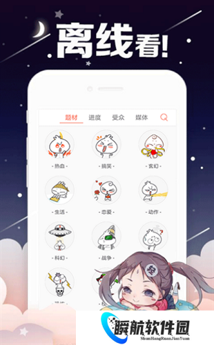 1、按题材、地区、热度、状态(连载/完结)等**度标签整理内容,三秒就会直达。