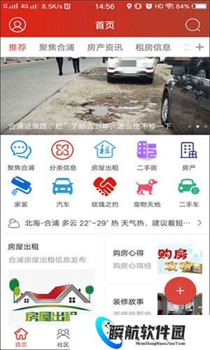 合浦123网是一个综合性的城市生活服务平台,提供了各种生活服务的分类,包括房屋租售、二手市场、招聘求职、交友活动、商家优惠等。用户可以通过该应用发布信息、筛选查找,与他人进行交流和交易。