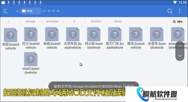 2、下载完成后,打开手机文件管理,在Android中找到dats。比如在qq群下载的文件,就点击tencen、QQfile,长按下载的mod文件,并移动到BUSSID文件夹中。