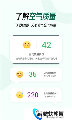 1、实时查看天气信息,立即获取您所在位置的0-15天内天气预报和空气质量污染指数。