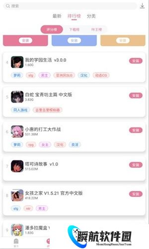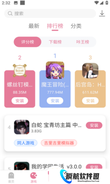 2、也能依据游戏排行挑选喜爱的类型下载安装,排行包含评分榜、免费下载榜及付费榜。