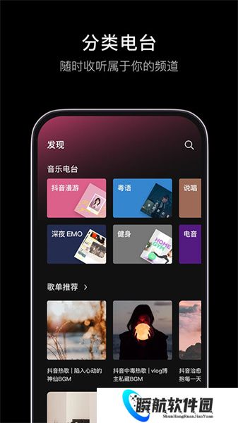 1、想听嘻哈/摇滚/电音/R&B类型歌曲,分类电台帮你随时随地,快速找到适合的音乐。