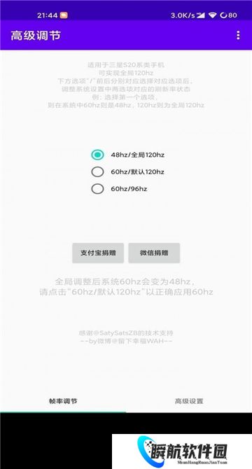 高级调节是能够强制调整手机刷新率的辅助软件,能突破系统默认帧率的限制,实现稳定的高帧率显示效果。软件允许网友根据不同使用场景,为每个应用单独设定显示帧率,降低处理器负荷,节省电量延长续航时间。