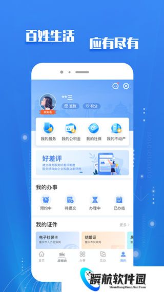 1、集成了证照办理、预约挂号、渝康码查询、结婚预约、公积金查询、社保查询等多种实用功能。