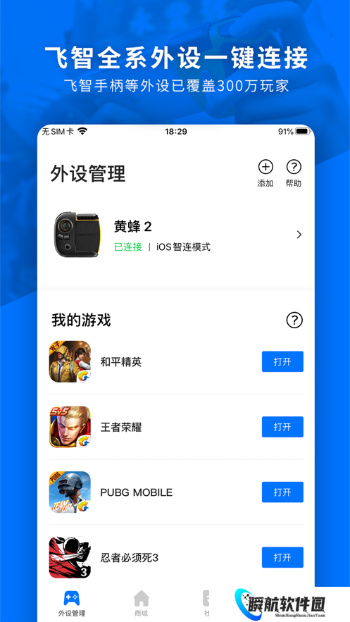 1、一键即可将飞智外设与手机连接,让玩家可以迅速进入游戏世界。