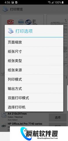 1、配置打印选项,如纸张大小、页面方向、打印页数、页面范围、单面双面打印。