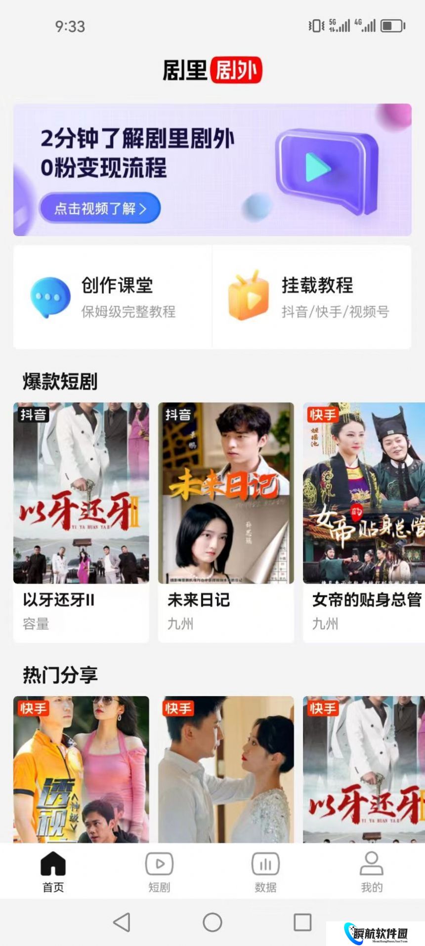 3、从剧里剧外app下载短剧素材,进行二次剪辑后,发布到抖音,快手,视频号平台。