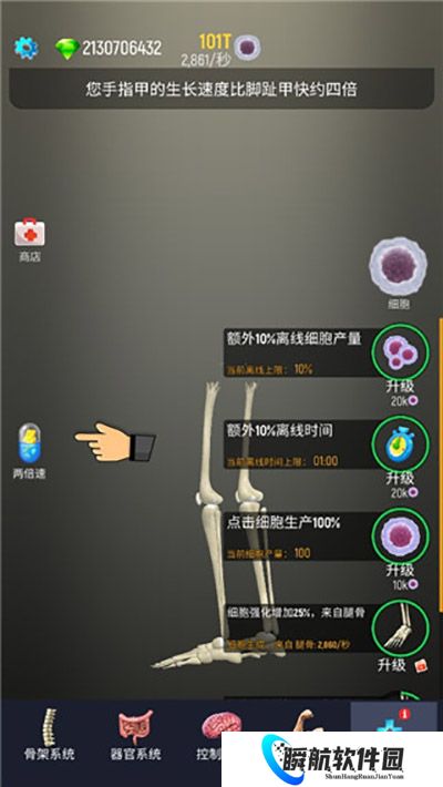 在放置人类中文版中,玩家需要不断地升级自己的细胞,以便更好地养成人体的各个器官,玩家还可以通过购买道具来加速养成的过程,游戏中的钻石是非常重要的资源,可以用来购买50T的细胞以及其他道具。总之,放置人类中文版是一款非常有趣的模拟建造人类的游戏。通过这款游戏,玩家可以深入地了解人类的身体构造和发展历程,同时还能感受到当创世主的快感,如果你对人体构造感兴趣,不妨来下载体验一下吧!