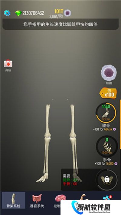 2、从最先的骨架开始解锁,小编这里拥有无限制钻石所以直接用钻石购买了100T的细胞开始养成;