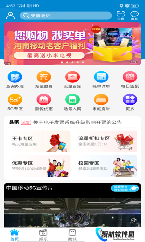河南移动网上营业厅app是中国移动为河南地区移动用户打造的生活服务软件,可以通过软件查询自己的话费余额、办理套餐变更、查询账单、缴纳话费、办理流量等各种业务操作。每次充值话费都会获得获得积分,可以用于