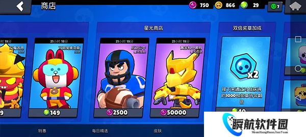 然后当你某个英雄到了紫牌以后,赛季结束时将会根据他的奖杯数来扣除一部分转换为星光点数,赛季每四周轮换一次。当每个赛季结束后星光商店还会出现一个超级宝箱(1500星光点)和一个大型宝箱(500星光点)供你购买。
