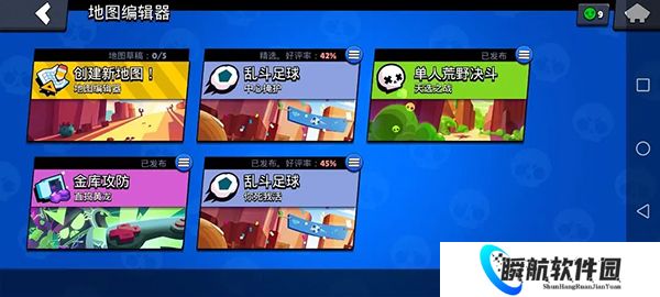 接下来就是重头戏!地图编辑器!点击右上角的工具栏,然后选择地图编辑器,这样你就可以在里面编辑地图啦!做好地图后提交,审核完后发布就可以被其他玩家体验到啦。每天都会有一种模式供玩家游玩,里面是其他玩家所设计的各种各样的地图,体验完后可以点赞或踩,好评率最多的地图第二天会上线供玩家游玩哦(当然也只有一天)。