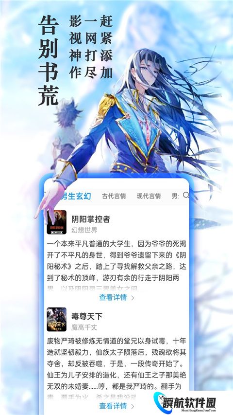 2、玄幻、奇幻、仙侠、武侠、都市、悬疑、历史、青春等数十种分类一应俱全,随心看。