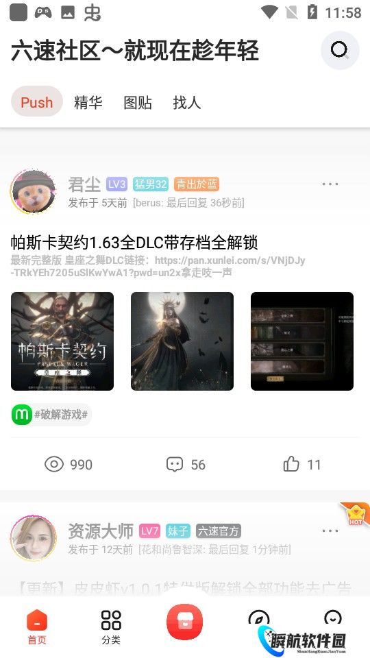 六速社区是一个手机软件、游戏资源的分享社区app,为用户提供了上千款精品的软件游戏的app安装包资源,包括了软件的破解版本免费下载,还有玩机大神在线教学刷机与root教程,无需再做伸手党,自己就能解决手机的问题。可以通过分类、关键词、排行快速搜索自己所需的资源帖子,找到所需的资源,也可以在帖子的评论区中探讨软件的配置方法,以提高社区互动性。
