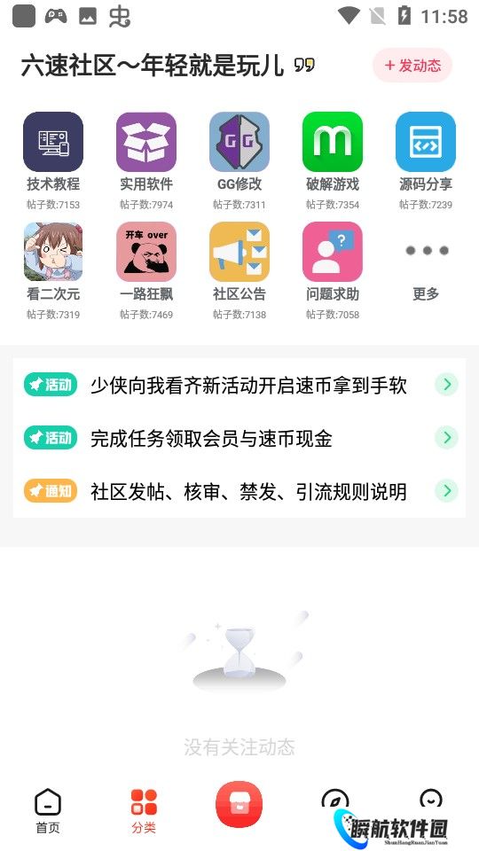 1、首先从本网站下载并安装六速社区APP,安装完后打开应用,直接进入首页。