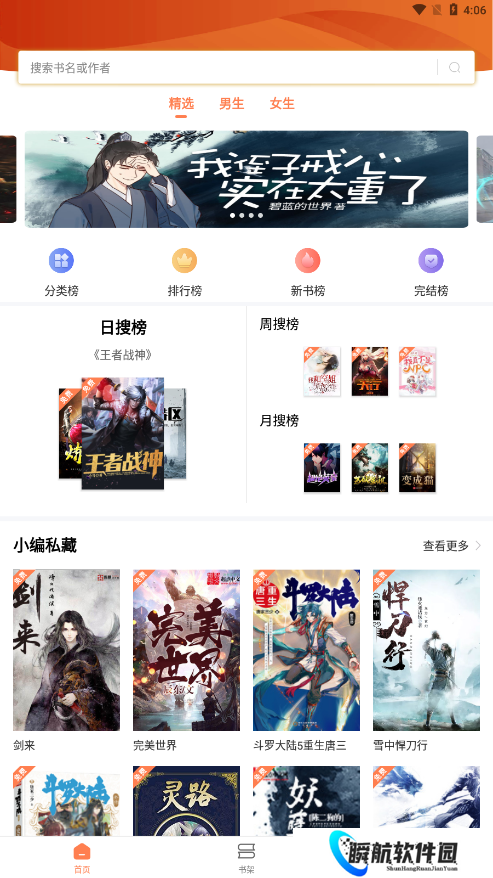 3、精心分类悬疑、科幻、穿越、言情、玄幻、都市、历史等主流及小众题材,配合精选榜单。