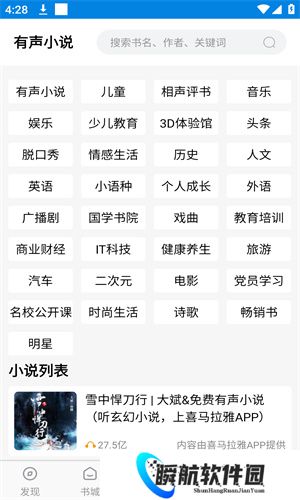 2、支持书名、作者、关键词模糊搜索,配合热门联想、标签筛选和语音输入功能找书高效。