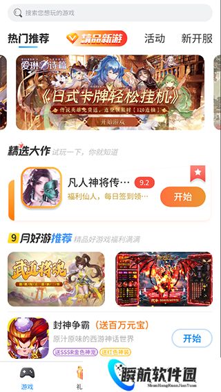 热门推荐、新品新游、活动、新开服;