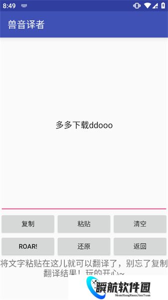 兽语翻译软件也叫兽音译者在线翻译,这是一款提供兽语翻译功能的文本加密工具,这款软件并不是让用户可以识别猫狗等动物发出的声音,所代表的含义。而是通过象声词的形式,将你所需要的文本,通过密码本的形式转换成
